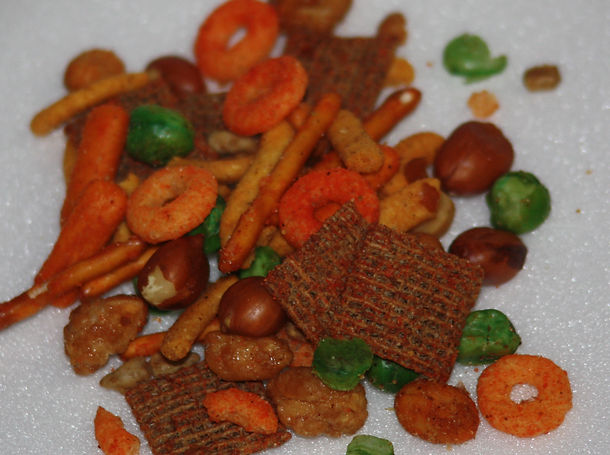 Ingredients: Honey Roasted Peanuts, Honey Roasted Sunflower Seeds, Peanuts Roasted in Soya Oil, Cajun Corn Sticks, Bits & Bites, BBQ Peanuts, and Green Peas